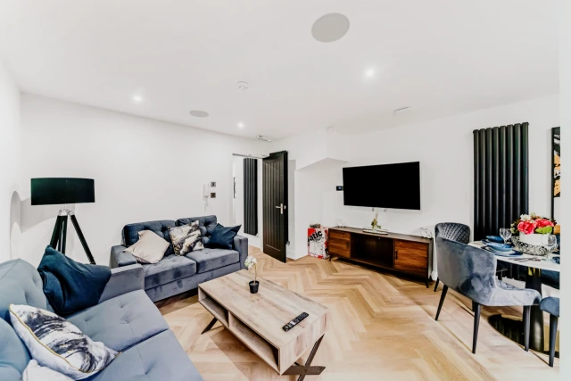 すべてのベッドルームにはダブルベッドがあり、大きなビルトインのワードローブでたくさんの収納スペースがあり、デスクチェア付きの作業スペースと32インチのフラットスクリーンスマートテレビがあります。